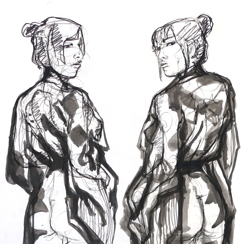 - Observation drawing from life and traditional Japanese depictions using an iPad and Sketch app to record my ‘drawing trail’ and digital prints;