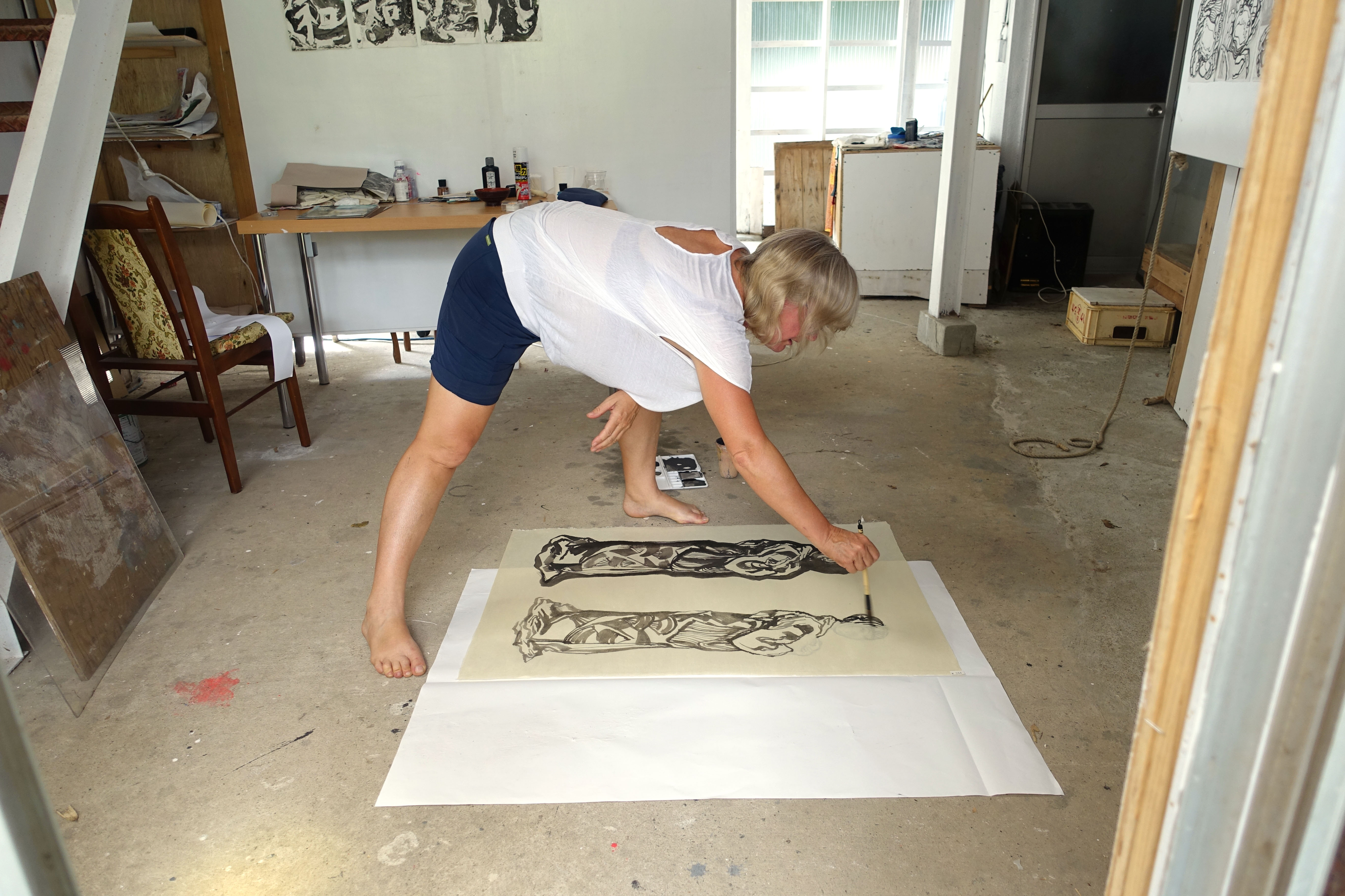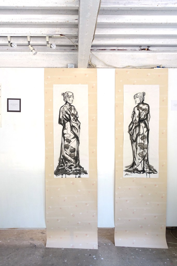 For my exhibition, I chose to concentrate on the ‘Floating World’ theme; ‘Beauty Looking Back’, which was explored by Hishikawa in his iconic image of the same name. My body of work was titled ‘Finding a Way Through Drawing’ and exhibited at Studio Kura. I provided Japanese translations of my aims and descriptions of each work to fully engage with the local artists, teachers, community and some tourists.